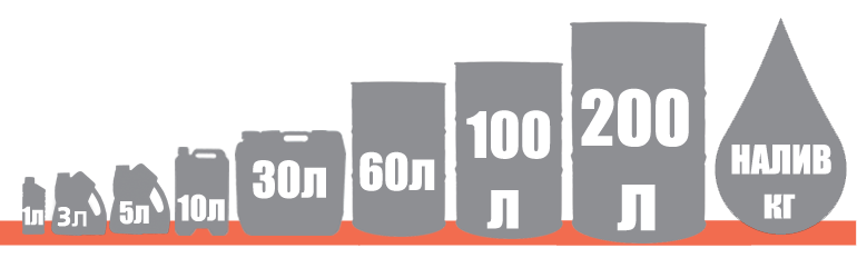 1л., 3л., 5л., 10л., 30л., 60л., 100л. и 200л.