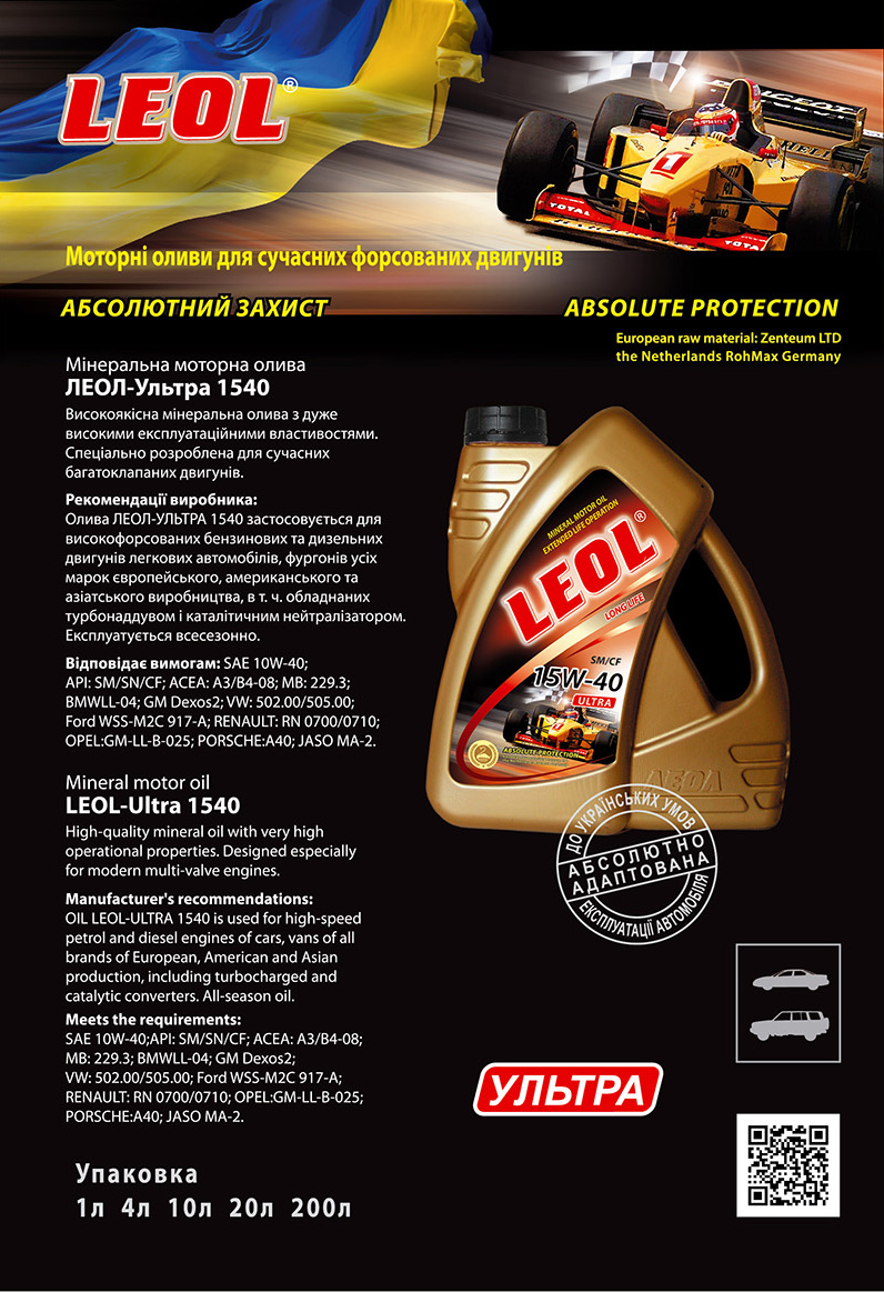 Всесезонное, минеральное моторное масло для использования в современных высокофорсированных бензиновых и дизельных двигателях, включая двигатели с турбонаддувом и оснащенных катализатором.